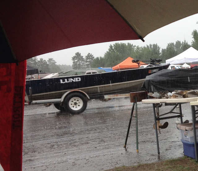 Not only was it rainy, but our tent is set up on a plot of land that becomes a stream if the downpour is long enough! AND I put the old tent top on by mistake, not the newer one, so we all sat under it with our umbrellas open!!!! The rain would let up off and on so you could make forays to the food truck (awesome onion rings!!) and bathrooms.